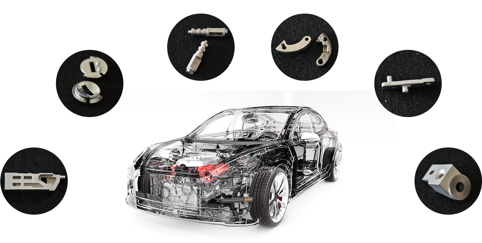 汽車產(chǎn)品的典型應(yīng)用:發(fā)動(dòng)機(jī)部件、渦輪增壓器部件、安全氣囊件、方向盤鎖件、 變速箱部件等。